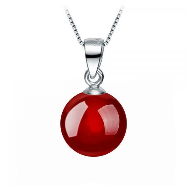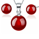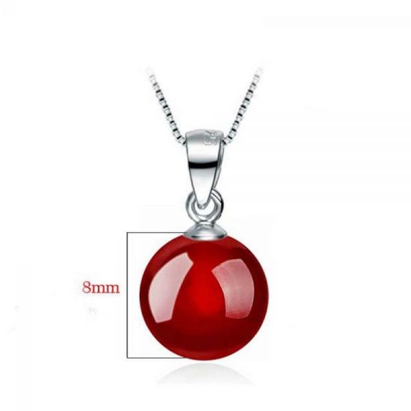 Ασημένιο σετ 925 μενταγιόν και σκουλαρίκια, διακοσμημένα με κόκκινο ορυκτό Αχάτη 8 mm! Συνοδεύεται από ασημένια αλυσίδα 925, 45cm.
