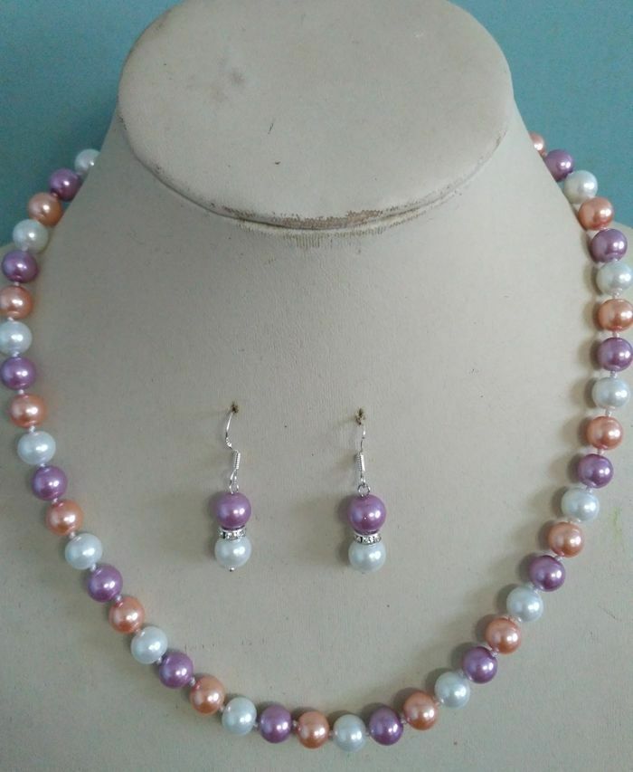 Σετ που αποτελείται από κολιέ με south sea Shell πέρλες ΑΑΑ, μέγεθος 8mm, περασμένες σε διπλό μεταξωτό νήμα, μήκος κολιέ 48 εκατοστά, multicolor,με τα ακριβώς ίδια σκουλαρίκια του!! Τα μεταλλικά στοιχεία του είναι από ασήμι 925.