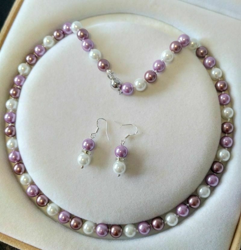 Σετ που αποτελείται από κολιέ με south sea Shell πέρλες ΑΑΑ, μέγεθος 8mm, περασμένες σε διπλό μεταξωτό νήμα, μήκος κολιέ 48 εκατοστά, multicolor,με τα ακριβώς ίδια σκουλαρίκια του!! Τα μεταλλικά στοιχεία του είναι από ασήμι 925.