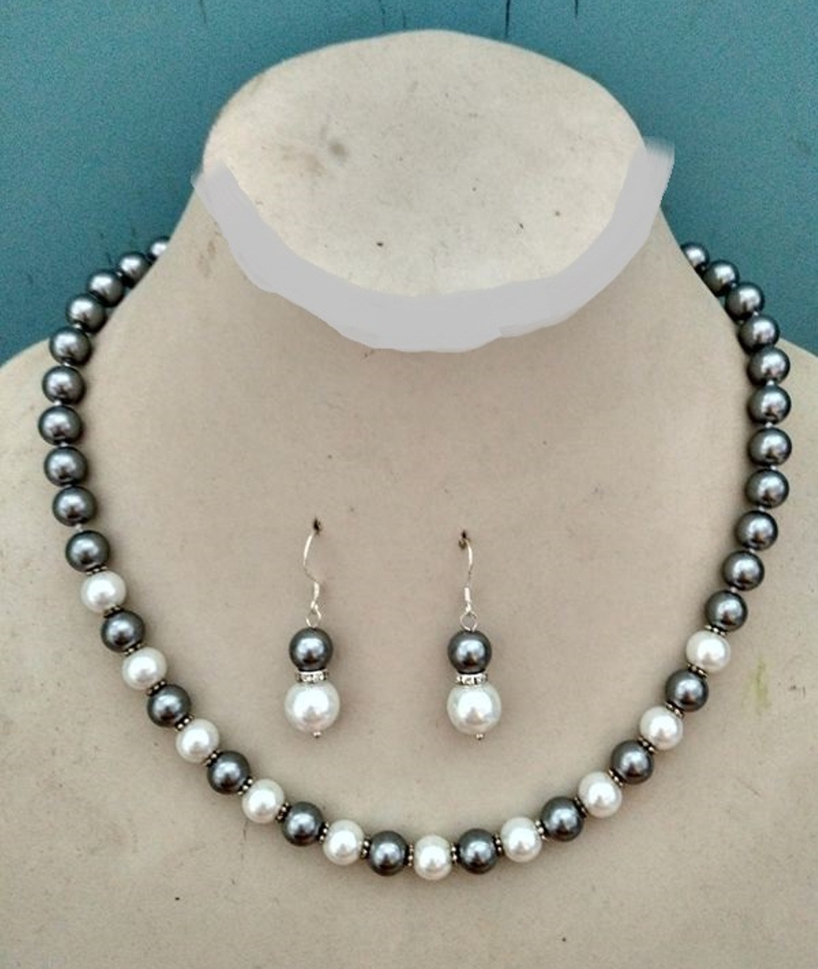 Σετ που αποτελείται από κολιέ με south sea Shell πέρλες ΑΑΑ, μέγεθος 8mm, περασμένες σε διπλό μεταξωτό νήμα και λευκά ζιργκόν ενδιάμεσα στις πέρλες,μάκρος κολιέ 48 εκατοστά, σε χρώμα άσπρο γκρι,με τα ακριβώς ίδια σκουλαρίκια του!! Τα μεταλλικά στοιχεία του είναι από ασήμι 925.