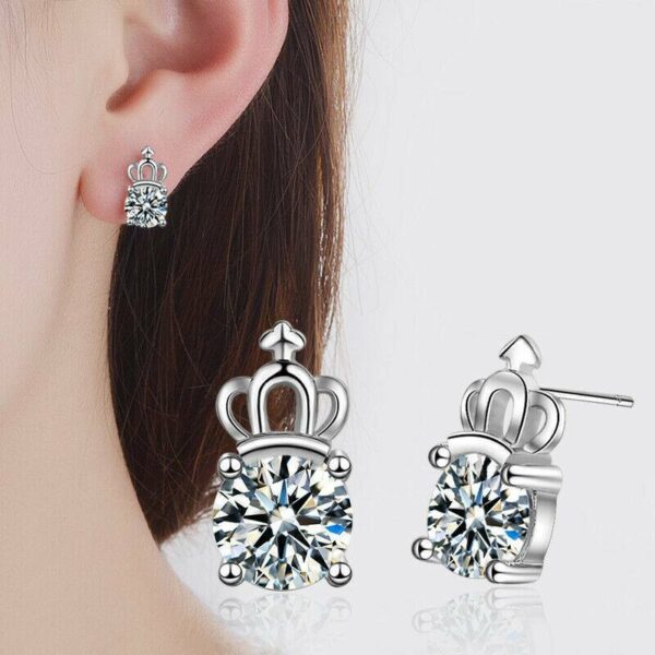 Μικροσκοπικά, ασημένια 925 σκουλαρίκια διακοσμημένα με ένα λευκό ζαφείρι, σε κοπή μπριγιάν