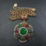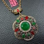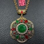 Πολύ ιδιαίτερο κόσμημα, κατασκευασμένο από χαλκό και ασήμι με αντικέ επεξεργασία. Μεγάλο μοτίφ 6x6cm, το οποίο συνοδεύεται από την ανάλογη αλυσίδα 70 εκατοστών. Σχεδιασμένο από την Betsey Johnson. Διακοσμημένο με ζιργκόν σε κοπή round και την κεντρική πράσινη πέτρα σε κοπή οβάλ. Φορέστε το χειροποίητο κολιέ και χαρίστε αέρα κομψότητας στην εμφάνισή σας.