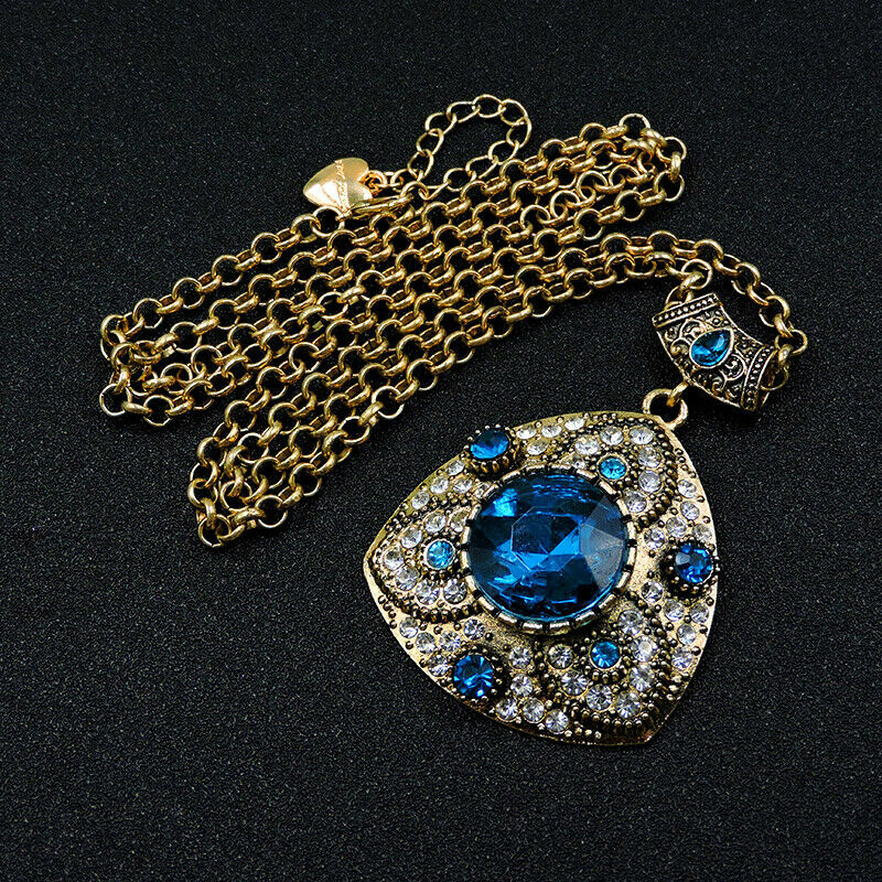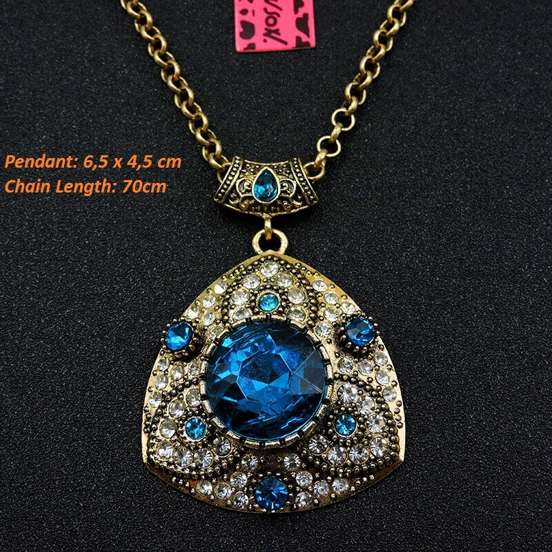 Πολύ ιδιαίτερο κόσμημα, κατασκευασμένο από χαλκό με αντικέ επεξεργασία, μοτίφ 4,5×4,5cm, το οποίο συνοδεύεται από την ανάλογη αλυσίδα 70 εκατοστών. Φορέστε το χειροποίητο κολιέ με το χρώμα το μπλε της θάλασσας, κρύσταλλο σε κοπή round και χαρίστε αέρα κομψότητας στην εμφάνισή σας.
