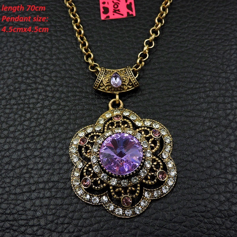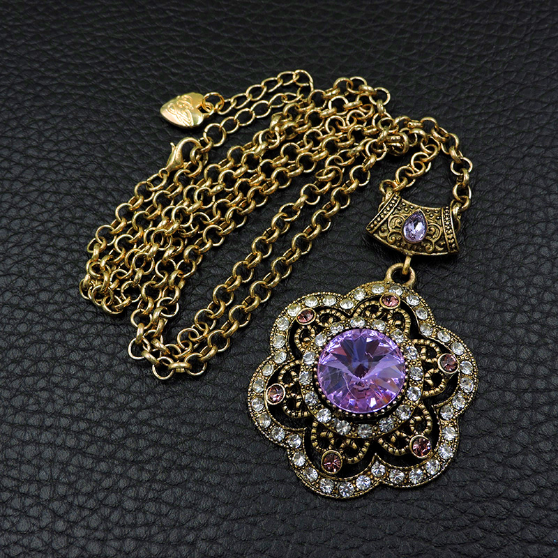 Πολύ ιδιαίτερο κόσμημα, κατασκευασμένο από χαλκό με αντικέ επεξεργασία, μοτίφ 4,5x45cm, το οποίο συνοδεύεται από την ανάλογη αλυσίδα 70 εκατοστών. Φορέστε το χειροποίητο κολιέ με το χρώμα του αμέθυστου κρύσταλλο σε κοπή round και χαρίστε αέρα κομψότητας στην εμφάνισή σας.