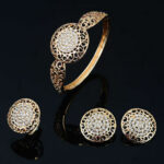 Καλοκαιρινό και λαμπερό το σετ που σας προτείνουμε για ολοκληρωμένες εμφανίσεις. Αποτελείται από μενταγιόν (46cm), βραχιόλι (8cm), σκουλαρίκια (3cm) και δαχτυλίδι σε open Size μέγεθος για να ταιριάζει σε όλα τα νούμερα. Κατασκευασμένο από ασήμι και χαλκό με επιμετάλλωση κίτρινου χρυσού. Διακοσμημένο με λευκά κρύσταλλα σε κοπή round!