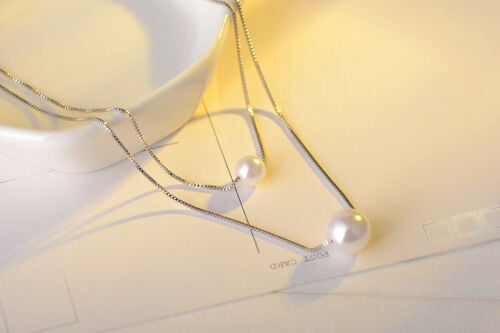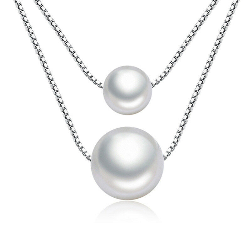Γυναικείο διπλό μενταγιόν κατασκευασμένο από ασήμι 925 διακοσμημένο με δύο λευκές πέρλα South Sea Shell 8mm και 10mm. Συνοδεύεται από ασημένια 925 αλυσίδα 45 cm διαθέτει αλυσιδάκι προέκτασης 7cm στο πίσω μέρος για να αυξομειώνεται το μήκος.
