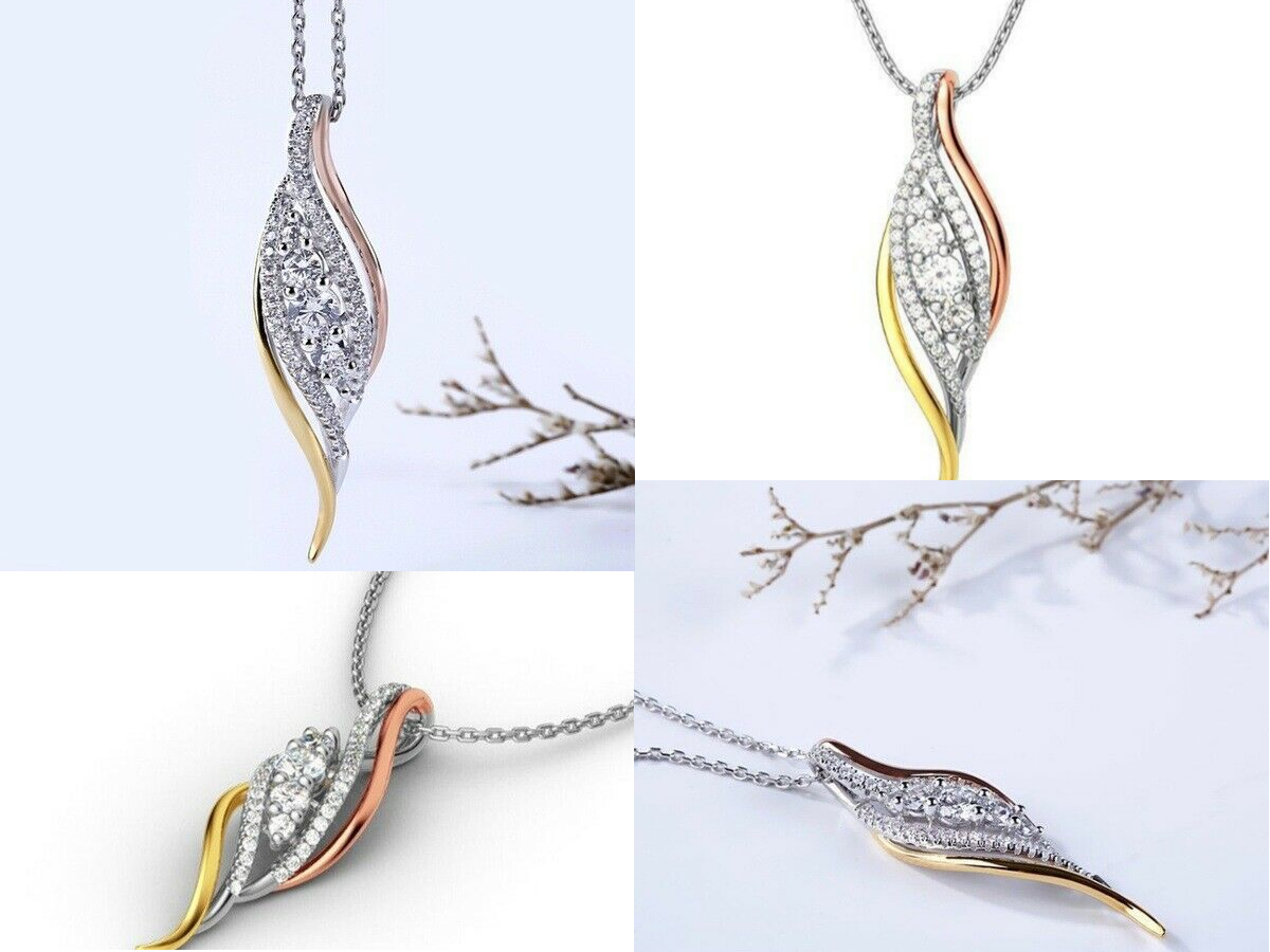 Μενταγιόν στα τρία χρώματα του Cartier (επιμετάλλωση κίτρινου ροζ και λευκού χρυσού 18 καράτια). Κατασκευασμένο από ασήμι 925. Διακοσμημένο με λευκά ζιργκόν σε κοπή round υψηλής ποιότητας και λάμψης. Συνοδεύεται από την επίσης ασημένια αλυσίδα του, μήκους 45 εκατοστών +5 εκατοστά το αλυσιδάκι προέκτασης στο πίσω μέρος.