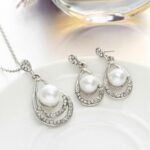Γυναικείο σετ που αποτελείται από μενταγιόν και σκουλαρίκια, κατασκευασμένο από Nickel Silver και διακοσμημένο με λευκά ζιργκόν και λευκές πέρλες!