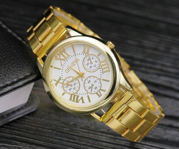 Γυναικείο ρολόι πολυτελείας, μοντέρνο σε χρώμα gold σε μπρασελέ και καντράν, με την κάσα του κατασκευασμένη από ανοξείδωτο ατσάλι, αδιάβροχο μέχρι 3 Atm (πλύσιμο χεριών)!