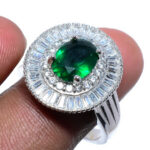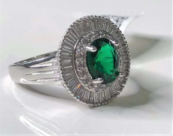 Υπέροχο χειροποίητο δαχτυλίδι, ασημένιο 925, διακοσμημένο στο κέντρο με ένα καταπράσινο σμαράγδι (lab created) σε κοπή oval και περιμετρικά με λευκά τοπάζ (lab created) σε κοπή παγιέτα, εξαιρετικής καθαρότητας και λάμψης!