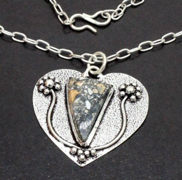 Xειροποίητο, ινδικό μενταγιόν κατασκευασμένο από ασήμι 925. Διακοσμημένο με 100% ορυκτό, ημιπολύτιμο λίθο ίασπις (Malingo jasper). Mat φινίρισμα. Mήκος αλυσίδας 45cm.