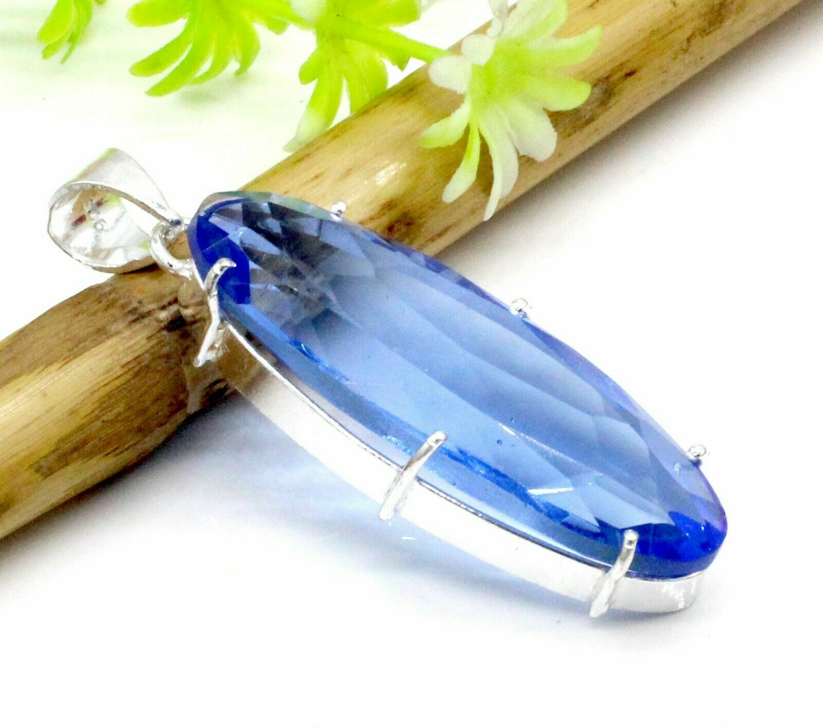 Xειροποίητο, μενταγιόν κατασκευασμένο από ασήμι 925 και διακοσμημένο με ένα ορυκτό, πολύτιμο, λαμπερό μπλε τοπάζι σε κοπή Oval. - Swan Offers