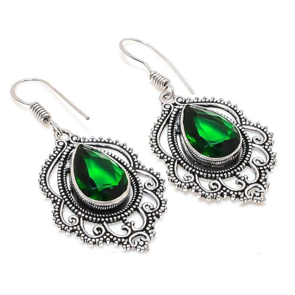 Χειροποίητα ινδικά σκουλαρίκια, κατασκευασμένα από ασήμι 925. Διακοσμημένα με Τσαβορίτη (Tsavorite) (lab creation) σε κοπή pear.