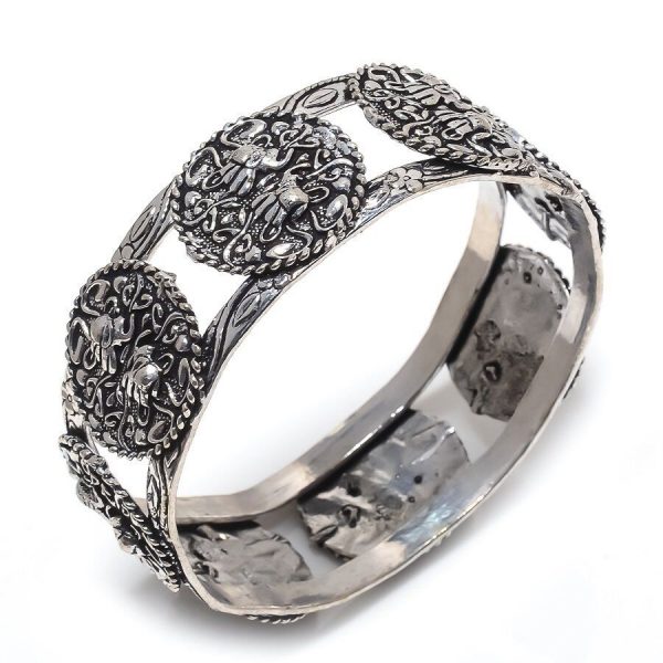 Χειροποίητο, ινδικό βραχιόλι, κατασκευασμένο από ασήμι 925. Διαθέτει υψηλής ποιότητας αντικέ, ανάγλυφο σκάλισμα στο σύνολο της επιφάνειας του.Tο συγκεκριμένο κόσμημα είναι ένα και μοναδικό κομμάτι.